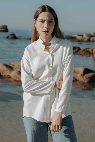 La camisa blanca atemporal como una prenda versátil y esencial que se adapta a ti. Perfecta para situaciones formales o informales que te ayudará a crear tu propio estilo. Diseñada y confeccionada en Galicia con algodón rústico. VER AQUÍ